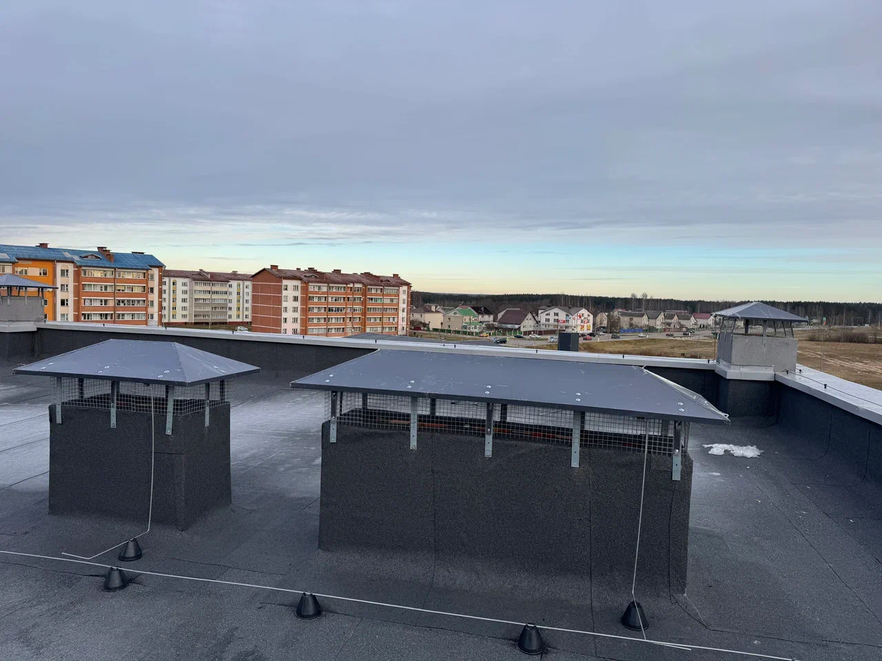Поставка индивидуальных кровельных зонтов нестандартных размеров по проектной документации. Компания «Экозона» изготовила и поставила кровельные вентиляционные зонты для объекта социального назначения — детского сада. Заказчиком выступило частное строительное унитарное предприятие «Алекс-монтаж» (Витебская область).